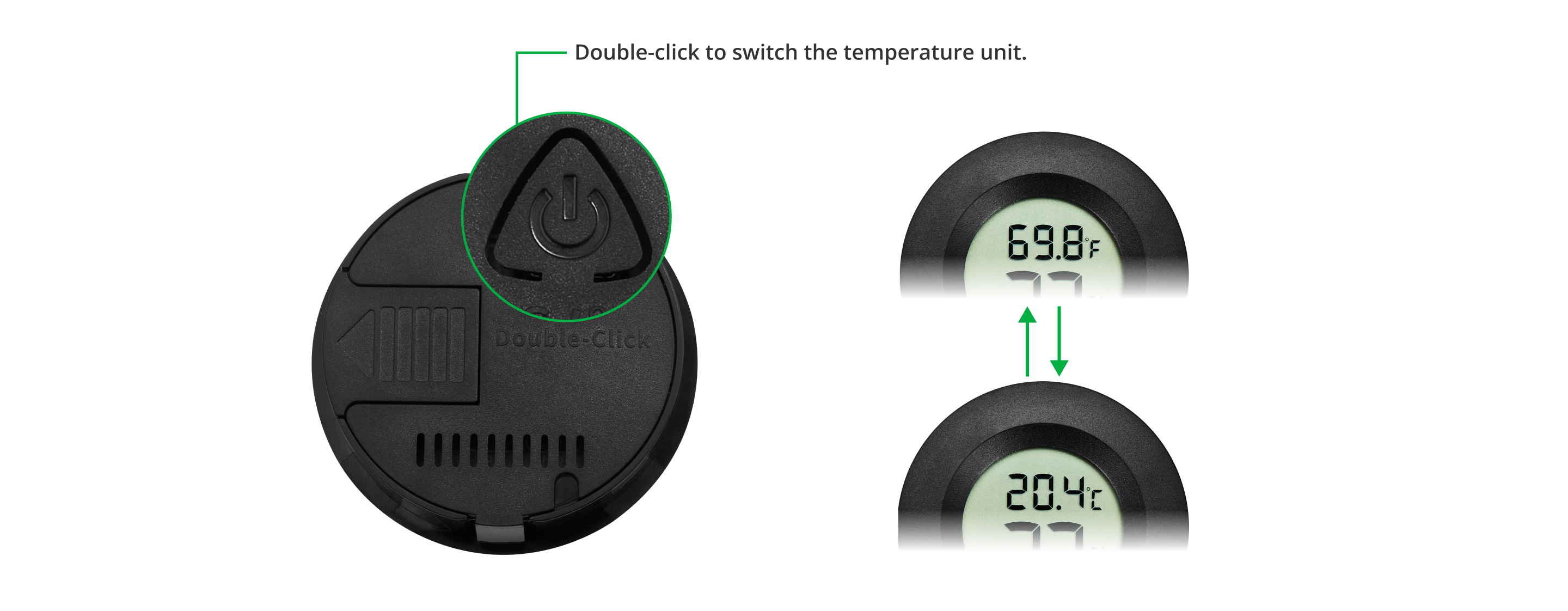 Can be switched between Fahrenheit and Celsius with a double-click the ℃/℉ conversion button on the back | Rated voltage is DC 1.5V (1x LR44 button cell battery)